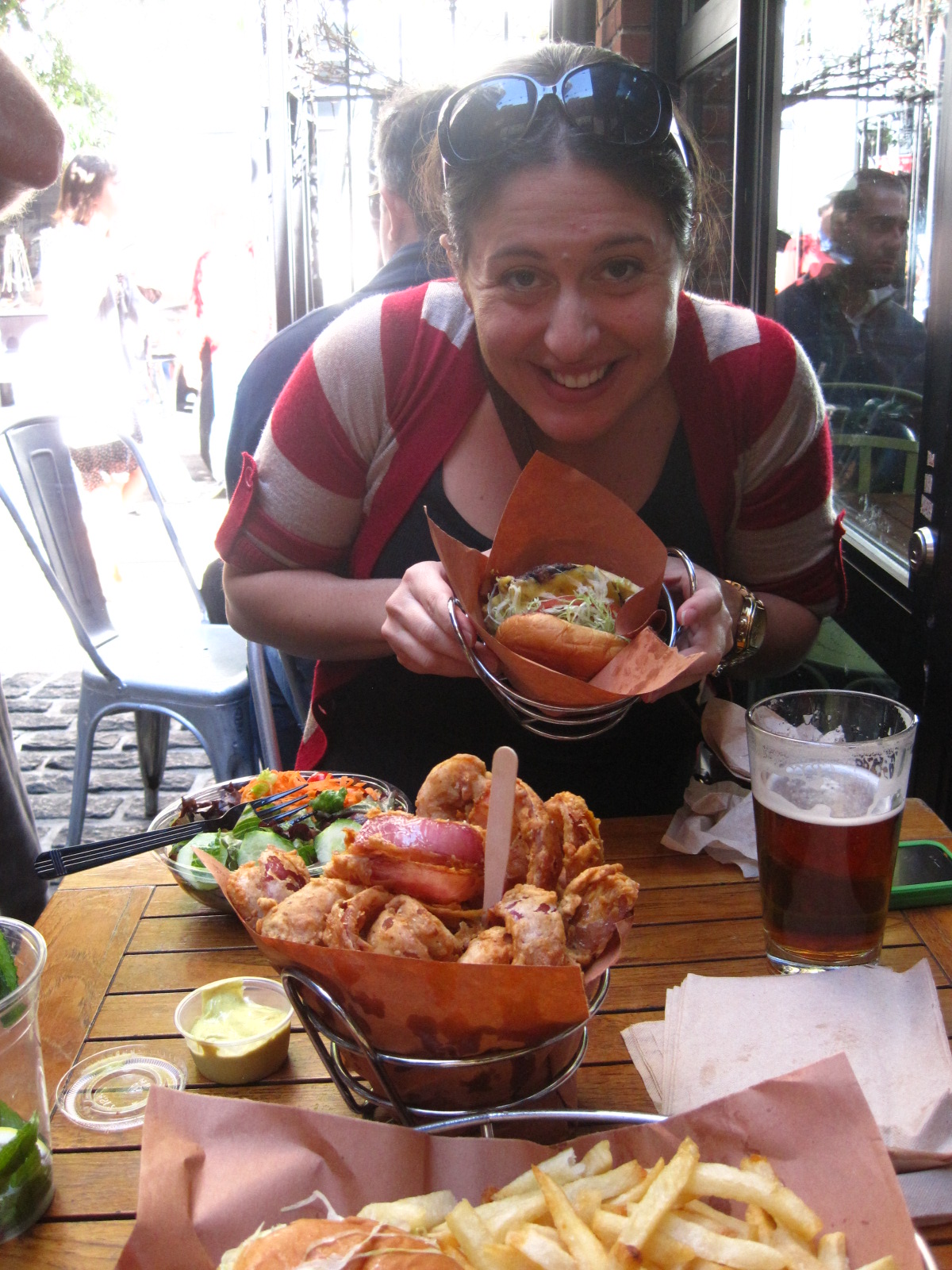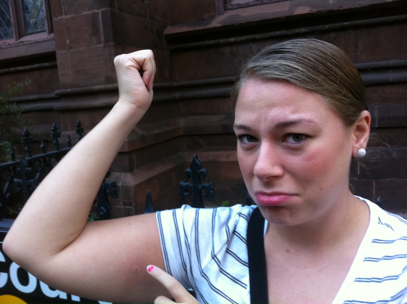 When I was a mere six years old, I was told by my all-too-wise sister that if I stayed still in the presence of a bee, they would leave me alone. Upon standing still, I was stung in my thigh. On Saturday, a full 18 years later, I was walking through the farmers market and stopped to grab a quick taste of some local cider and made a conscious effort to ignore the abundance of bees flying around. The woman behind the stand greeted Ruben and I by joking that she was dodging the bees and asked if we wanted some cider. We said yes and right when I reached for the cup, I was stung in the arm. I felt bad because right when I was stung, I dropped the cup of cider all over her table and burst into tears. Bee stings freaking hurt. Ruben was a champ and grabbed the stinger and body and I excused myself to cry. Now, two days later, my arm is still swollen and is turning a yellow sort of color. Bees in the city? No thanks!